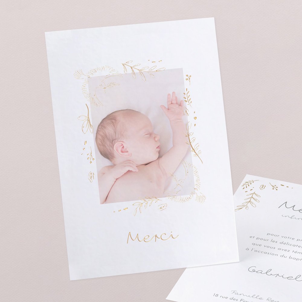Remerciez les proches qui ont entouré votre enfant lors de son baptême avec une jolie carte de remerciement assortie au faire-part de ce grand jour.