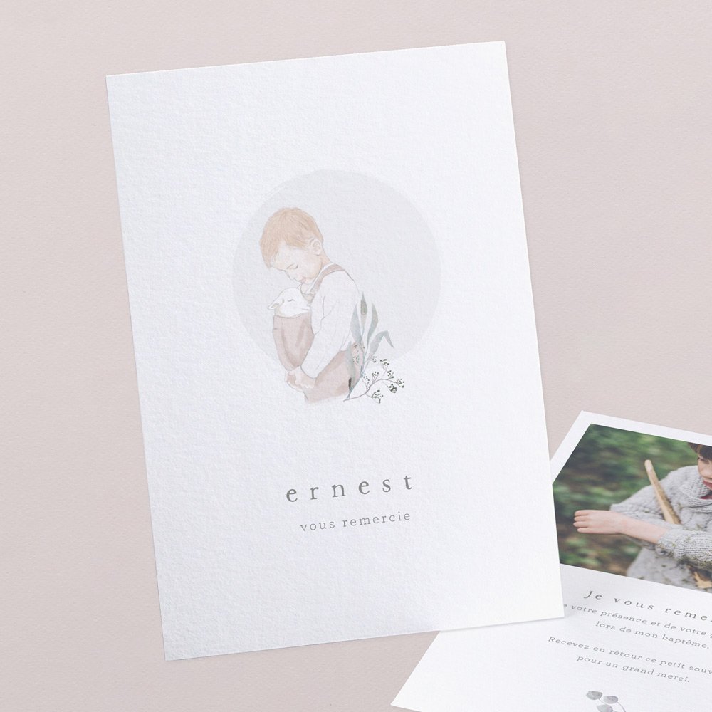 Remerciez les proches qui ont entouré votre enfant lors de son baptême avec une jolie carte de remerciement assortie au faire-part de ce grand jour.