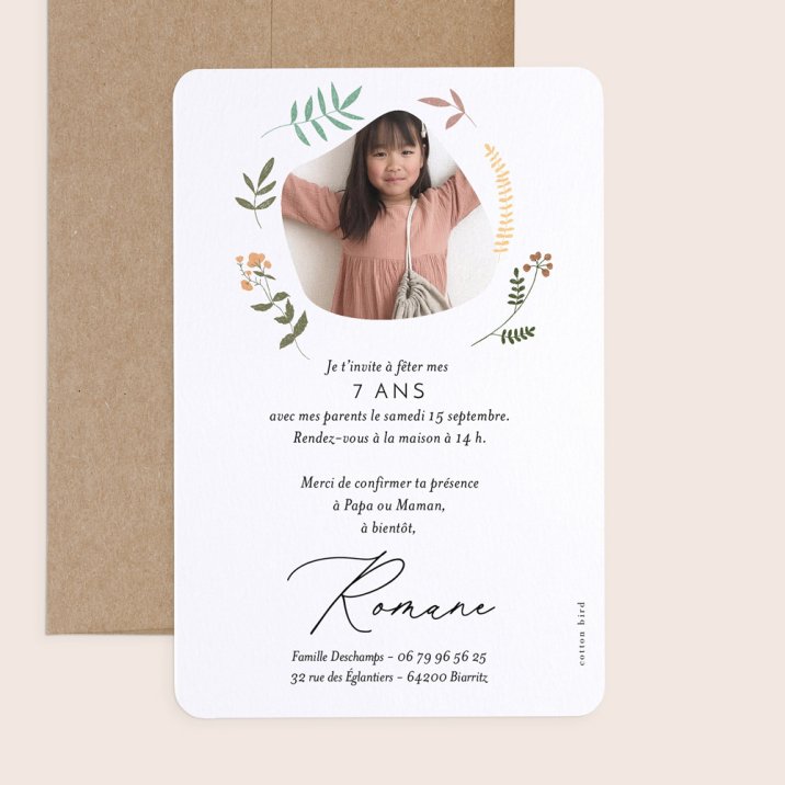 Parsemée de fleurs aux jolis boutons colorés, la carte d'anniversaire Herbier délivrera une invitation pleine de charme et de poésie.