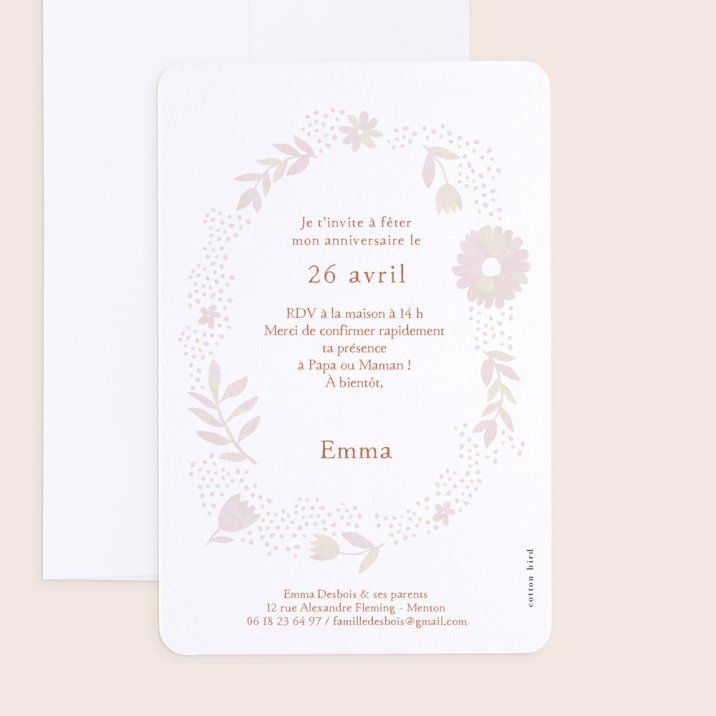 Conviez famille et amis au plus hygge des goûters d'anniversaire avec la carte Olga et sa couronne végétale d'inspiration Scandinave. Une invitation douce et chaleureuse qui sera idéale pour une fête printannière ou estivale.