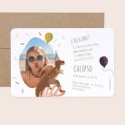 Cette carte haut de gamme au design original et exclusif se personnalise avec tous les détails de la fête d'anniversaire de votre enfant.