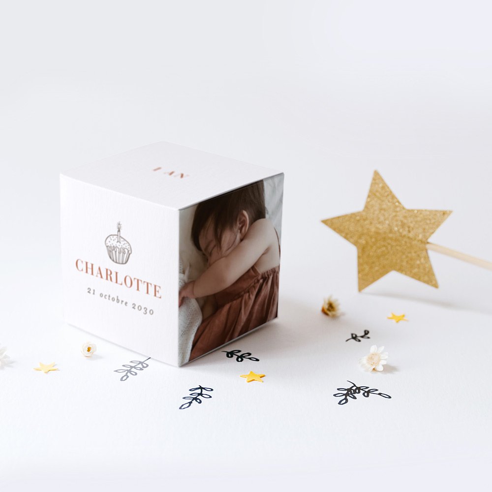 Assurez-vous que les invités repartent avec un agréable souvenir de l'anniversaire qu'ils ont célébré en leur offrant un petit cube surprise Première bougie.