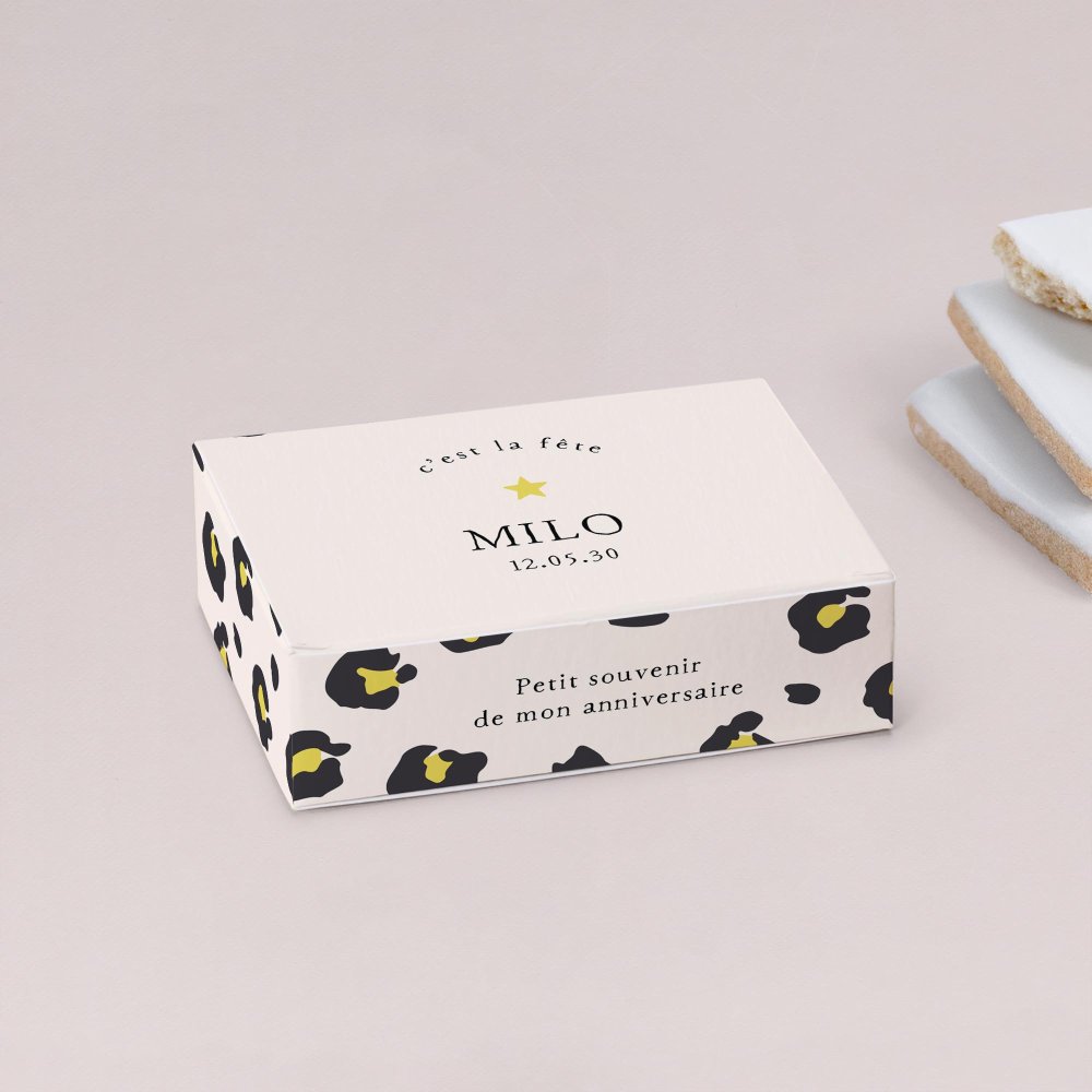 Déposée sur la table d’anniversaire ou offerte en cadeau aux invités à la fête, cette boîte à biscuits personnalisée ravira les petits (et les grands !) gourmands.