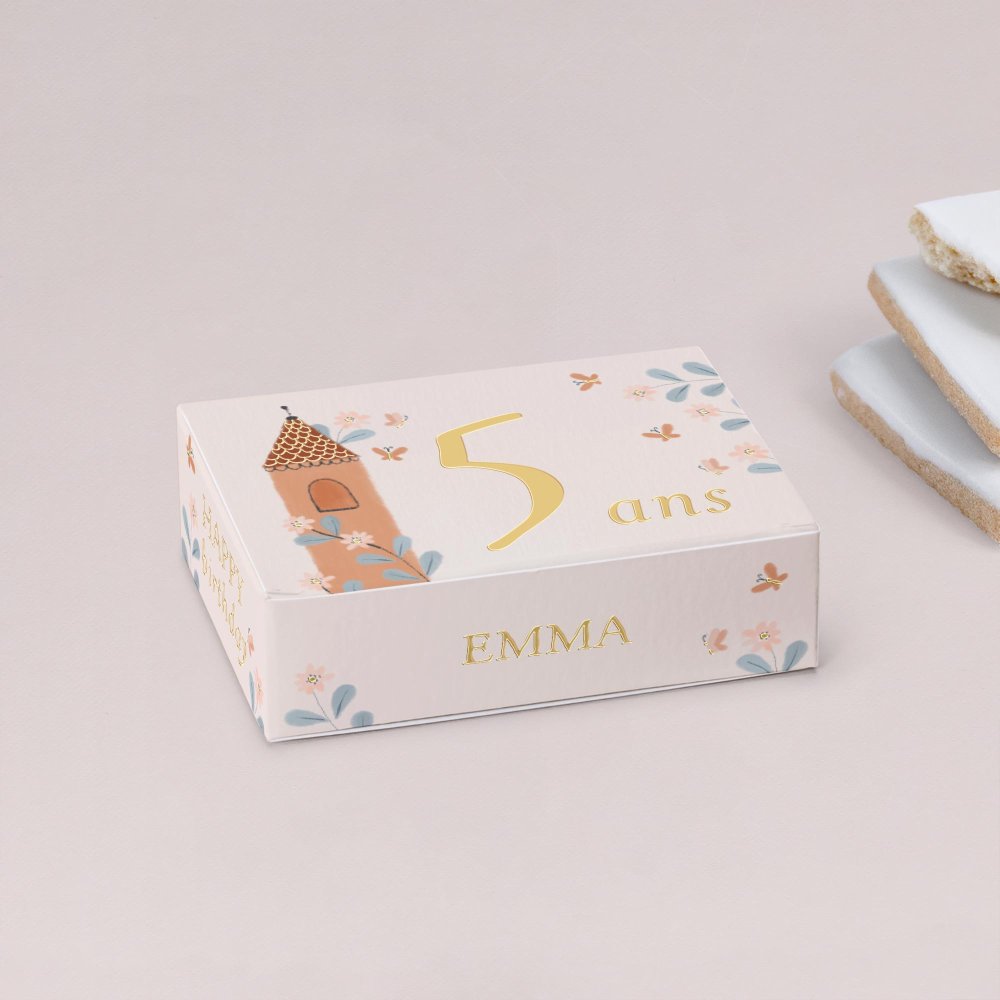 Déposée sur la table d’anniversaire ou offerte en cadeau aux invités à la fête, cette boîte à biscuits personnalisée ravira les petits (et les grands !) gourmands.