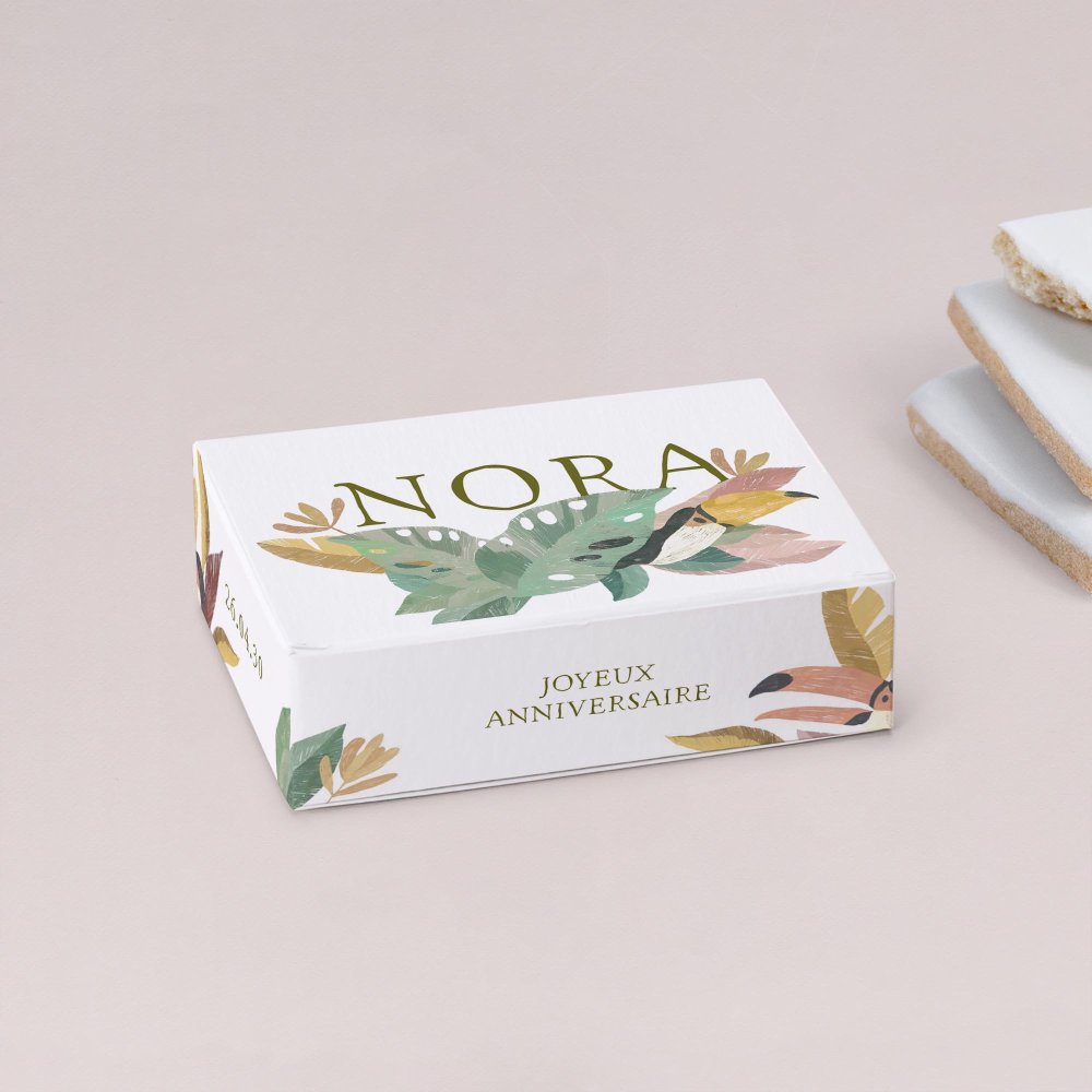 Déposée sur la table d’anniversaire ou offerte en cadeau aux invités à la fête, cette boîte à biscuits personnalisée ravira les petits (et les grands !) gourmands.