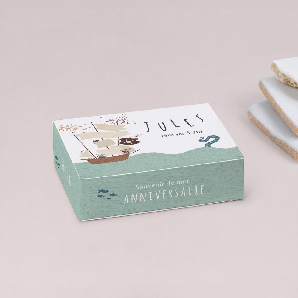Votre enfant a été gâté et entouré d'amour pour souffler ses bougies ? Remerciez celles et ceux qui ont contribué à rendre son anniversaire mémorable avec une boîte à biscuits À l'abordage ! garnie de délicieux sablés.