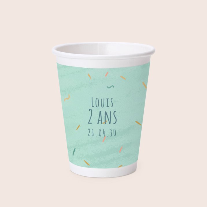 Offrez une agréable pause désaltérante aux invités présents à l'anniversaire de votre petit bout avec nos gobelets Confetti.