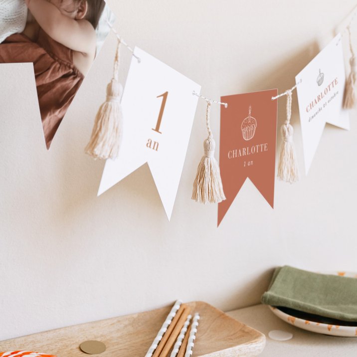 Créez le plus joyeux des décors pour l'anniversaire de votre petit trésor en ornant le lieu des festivités de guirlandes Première bougie.