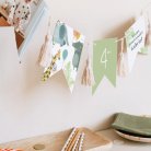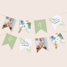 Cette guirlande de 16 fanions recto-verso se personnalise avec la photo de votre enfant, son prénom, son âge, un petit message festif...