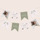 Cette guirlande de 16 fanions recto-verso se personnalise avec la photo de votre enfant, son prénom, son âge, un petit message festif...