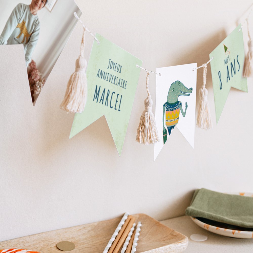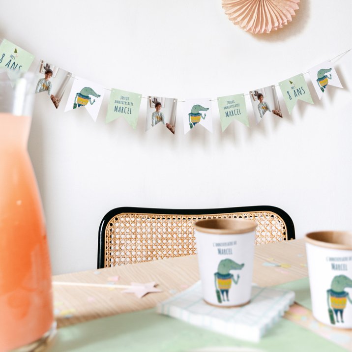 Créez le plus joyeux des décors pour l'anniversaire de votre petit trésor en ornant le lieu des festivités de guirlandes Petit croco.