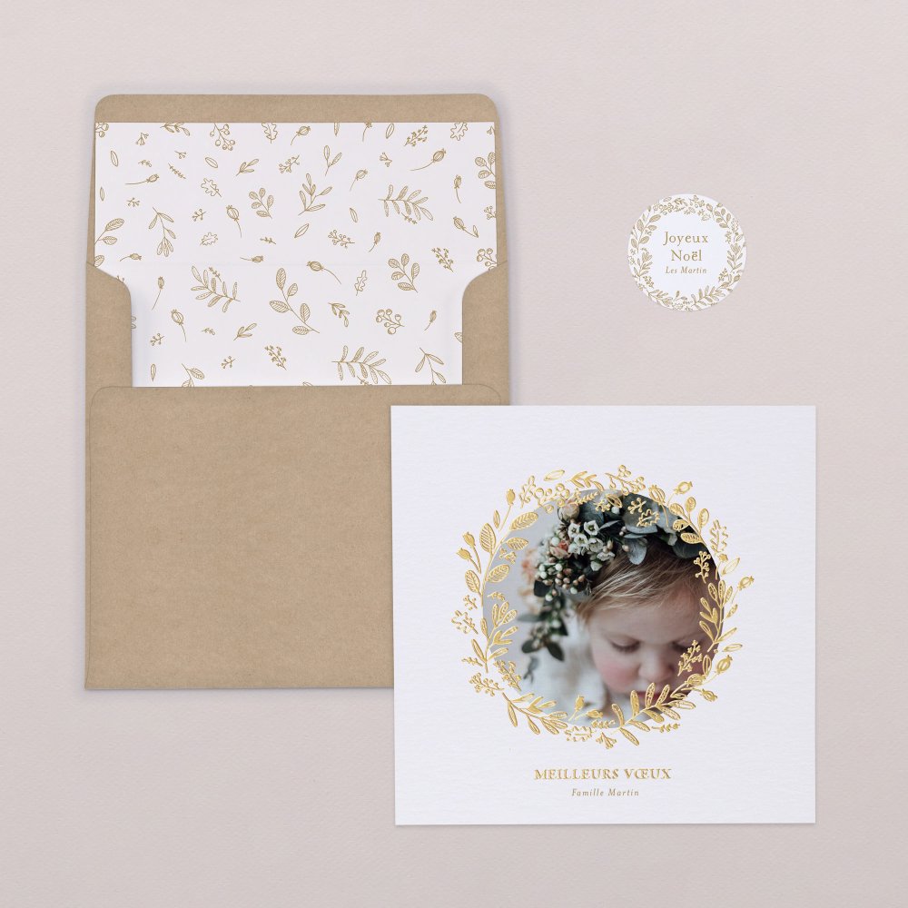 Un décor saisonnier et doré pour vos vœux de nouvelle année : tel est le tableau que nous avons imaginé sur la carte Arche d'or, pour accompagner avec élégance vos meilleures pensées.