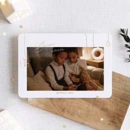 Cette carte de vœux recto-verso présente un format paysage, avec des coins arrondis pour plus de douceur.