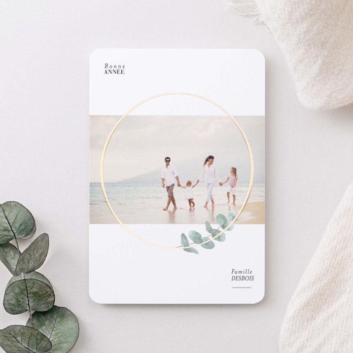 Cette carte de vœux recto-verso présente un format portrait, avec des coins arrondis pour plus de douceur.