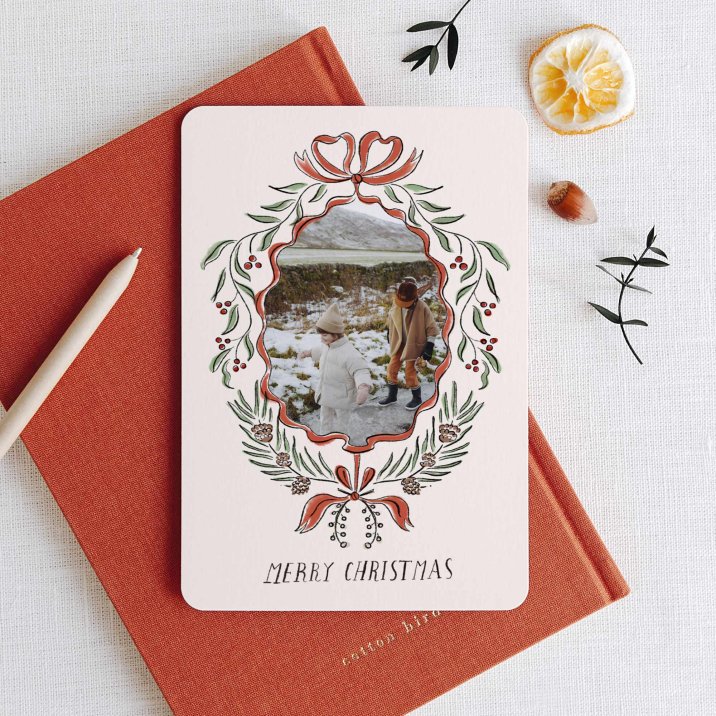 Cette carte de vœux recto-verso présente un format portrait, avec des coins arrondis pour plus de douceur.