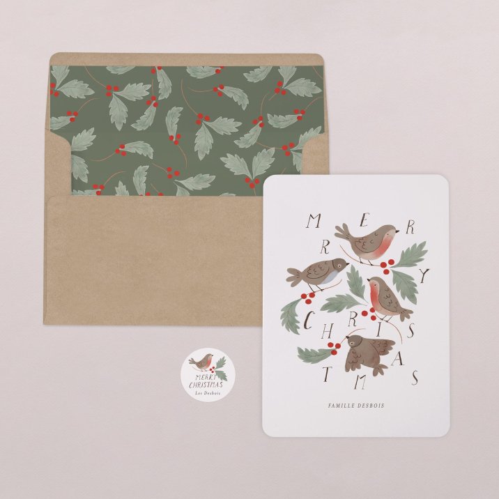 Cette carte de vœux recto-verso présente un format portrait, avec des coins arrondis pour plus de douceur.