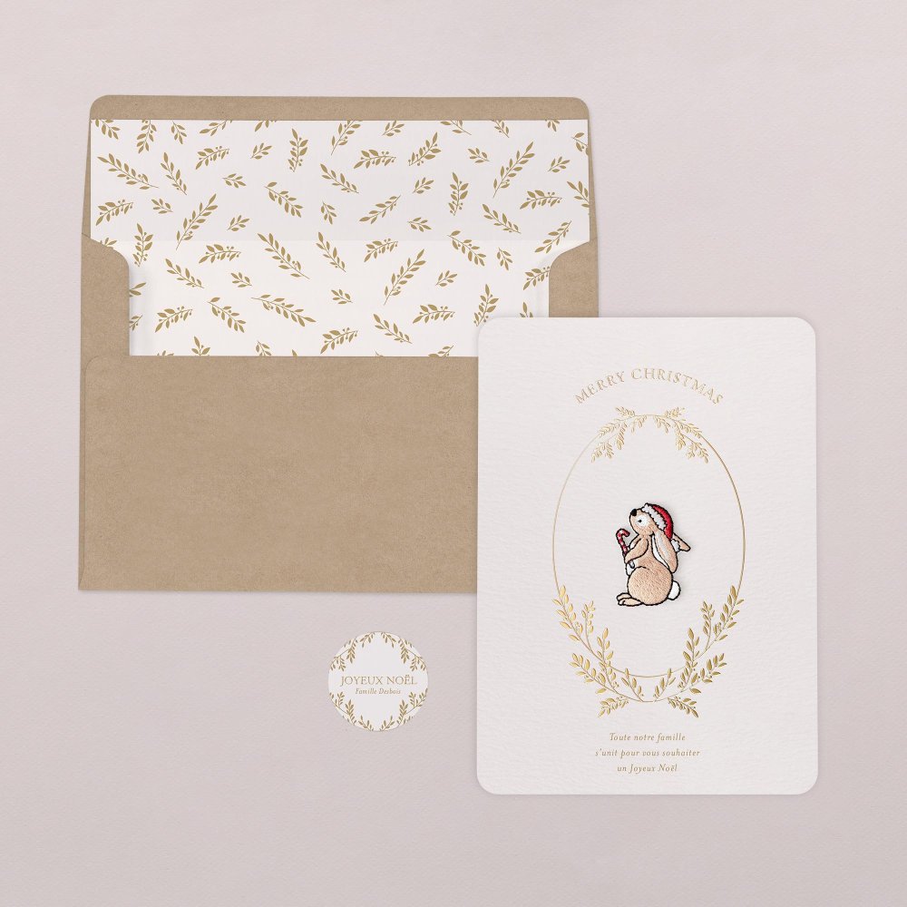 Iconique Père Noël, lapin festif : choisissez l’un de ces deux adorables messagers brodés pour personnaliser votre carte préférée.