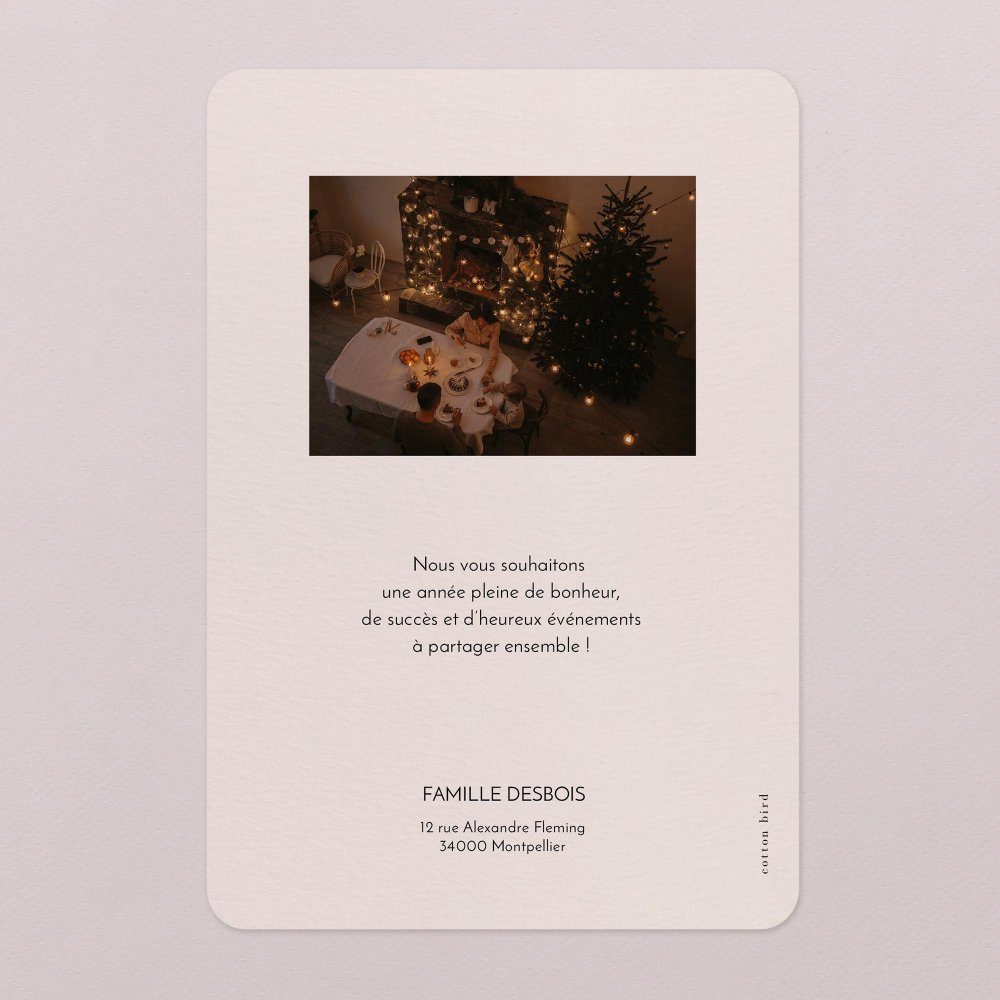 Cette carte de vœux recto-verso présente un format portrait, avec des coins arrondis pour plus de douceur.