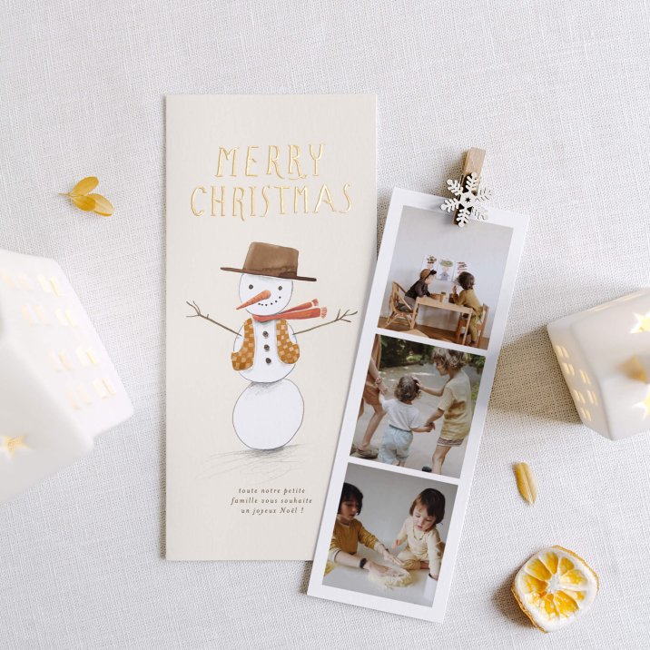 L’iconique personnage des journées enneigées s’invite sur la carte de vœux Mr. Snowman. Revêtu de sa plus belle tenue, il plongera vos destinataires dans une tendre ambiance hivernale, dès l’ouverture de leur courrier.