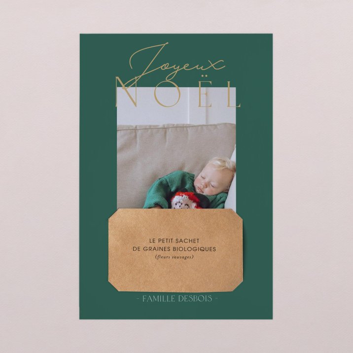 Sur cette création inédite, vos vœux sont accompagnés d’un sachet de graines de fleurs sauvages biologiques. Plus qu’un cadeau, c’est une véritable invitation à semer et à faire fleurir, ensemble, de précieux souvenirs pour la nouvelle année.