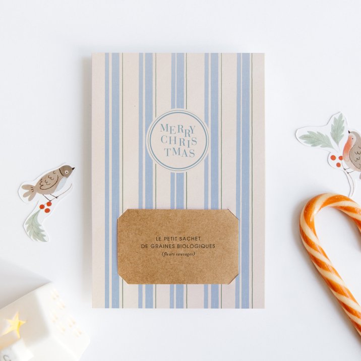 Sur cette création inédite, vos vœux sont accompagnés d’un sachet de graines de fleurs sauvages biologiques. Plus qu’un cadeau, c’est une véritable invitation à semer et à faire fleurir, ensemble, de précieux souvenirs pour la nouvelle année.