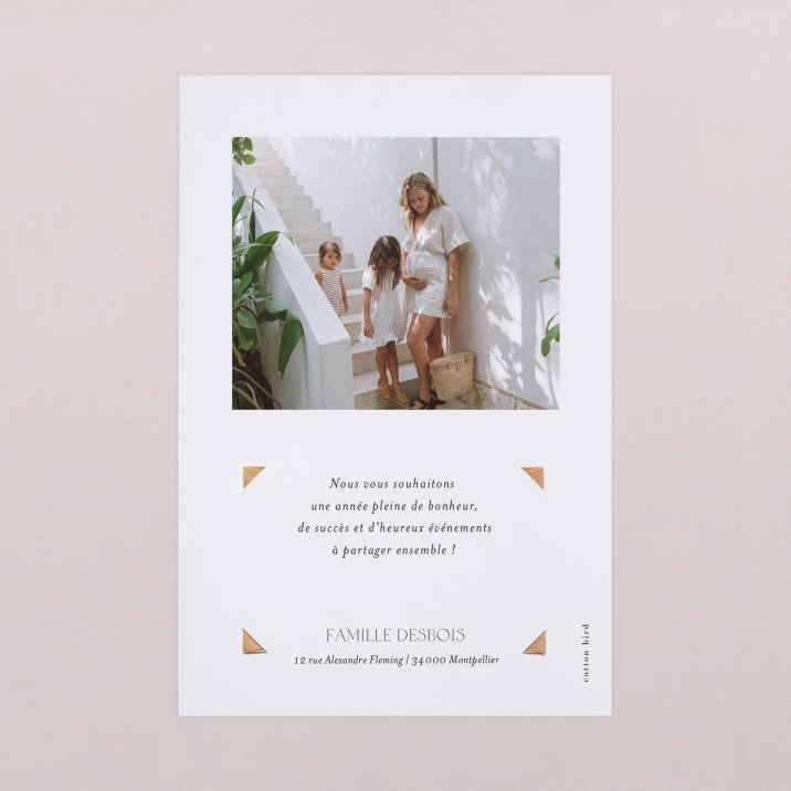 Sur cette création inédite, vos vœux sont accompagnés d’un sachet de graines de fleurs sauvages biologiques. Plus qu’un cadeau, c’est une véritable invitation à semer et à faire fleurir, ensemble, de précieux souvenirs pour la nouvelle année.