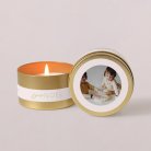 Notre bougie dorée est fabriquée en France. Présentée dans une élégante boîte en métal dorée et personnalisable, elle est délivrée dans son joli pochon en coton et comprend deux étiquettes adhésives, à personnaliser et à fixer par vos soins.
