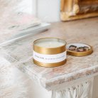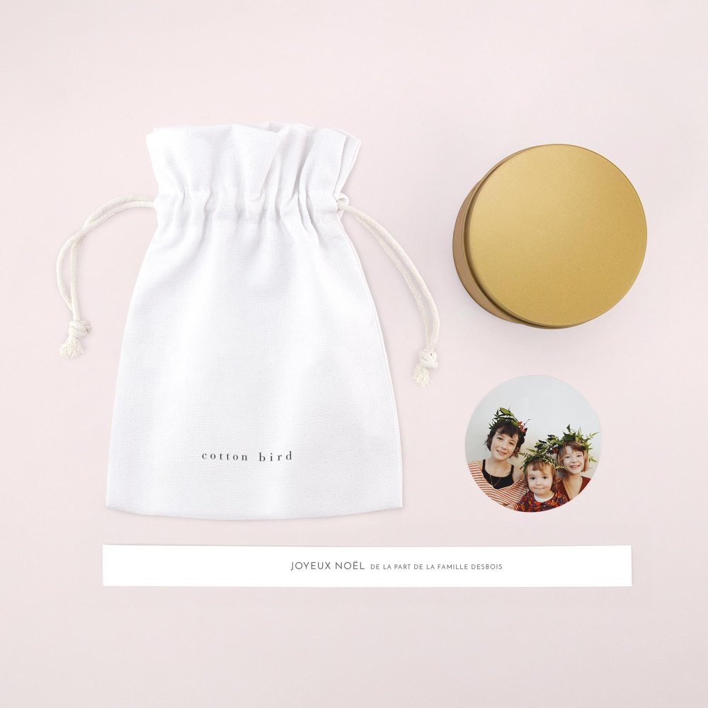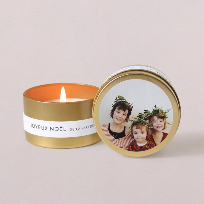 Notre bougie dorée est fabriquée en France. Présentée dans une élégante boîte en métal dorée et personnalisable, elle est délivrée dans son joli pochon en coton et comprend deux étiquettes adhésives, à personnaliser et à fixer par vos soins.
